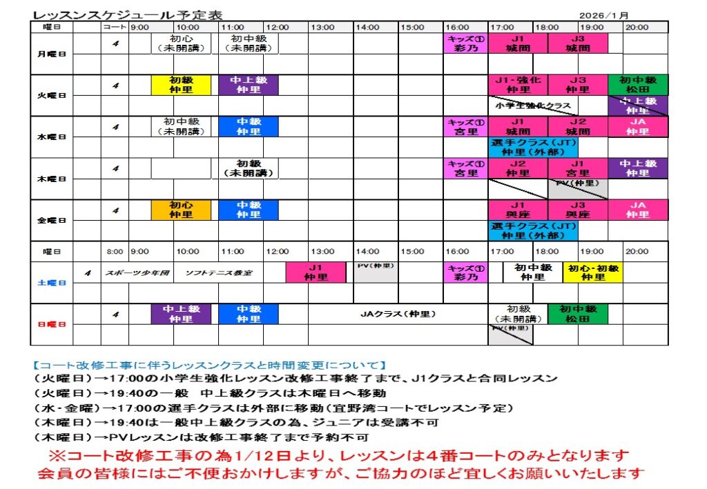 4. 【レッスンスケジュール変更のお知らせ】